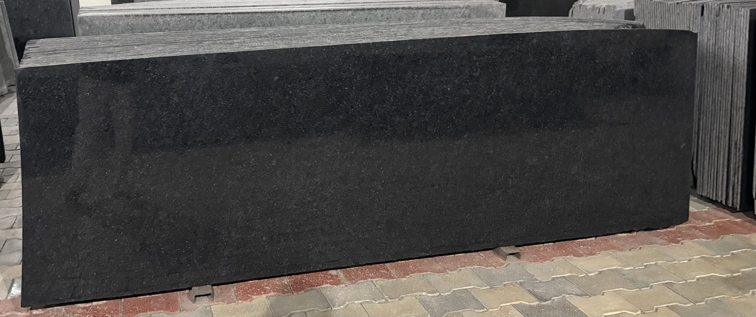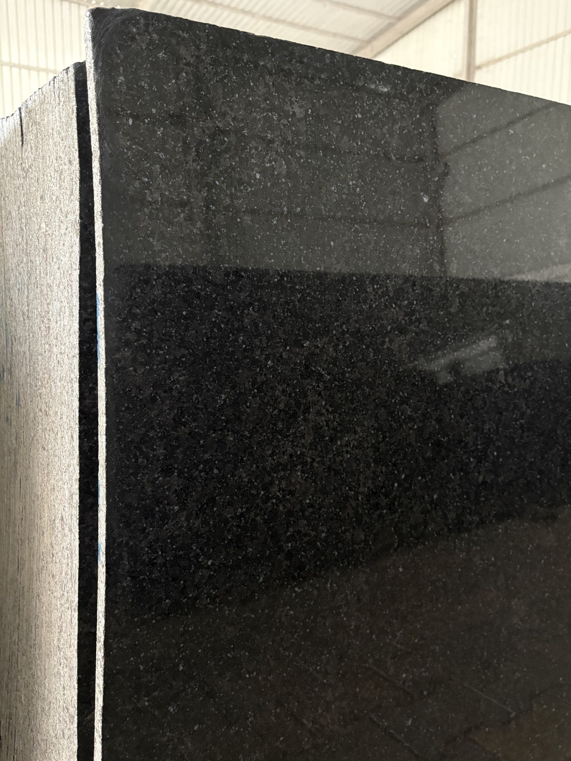 R Black Granite features a deep black base highlighted with subtle blue dots, adding a unique character and elegant visual appeal to any space.